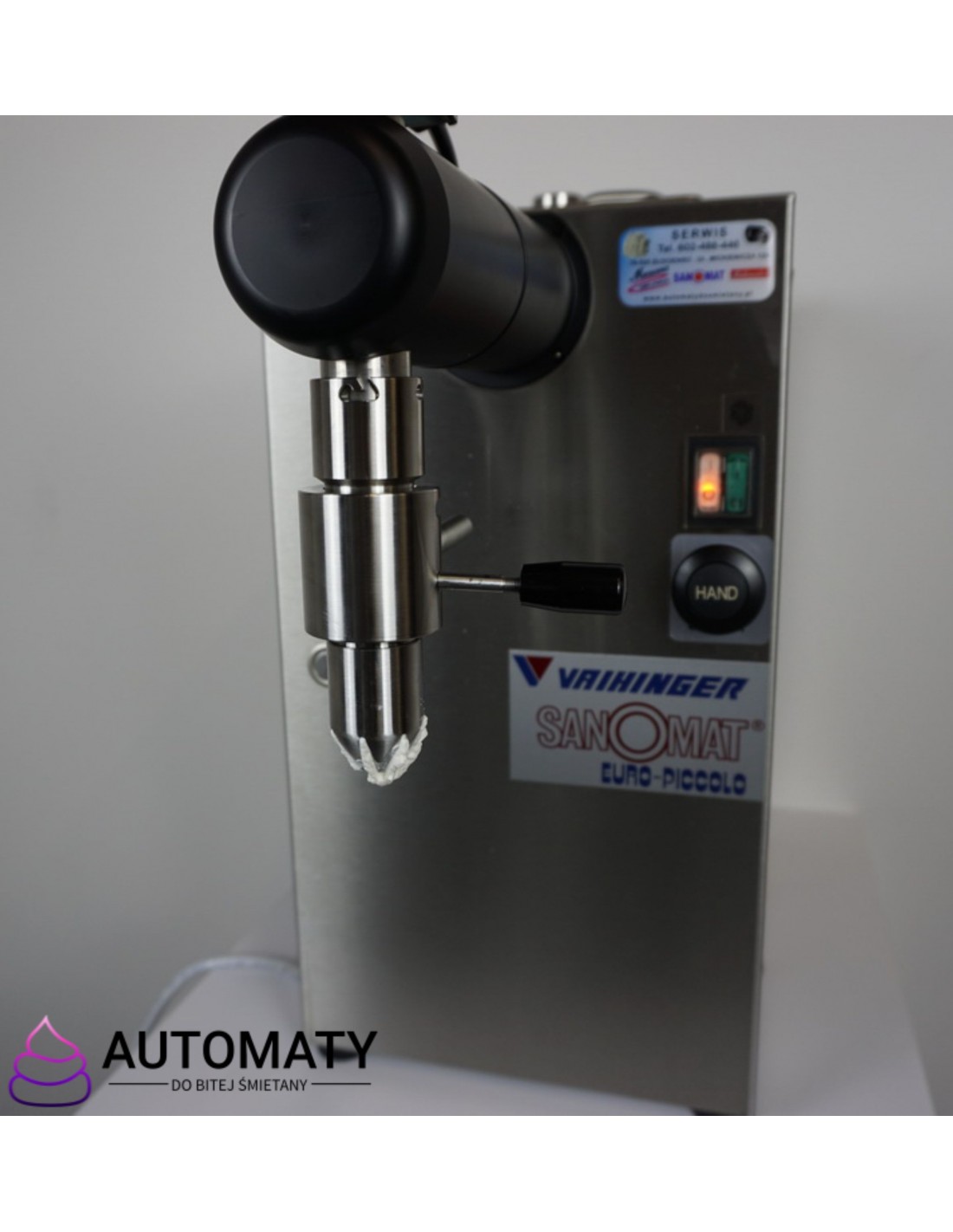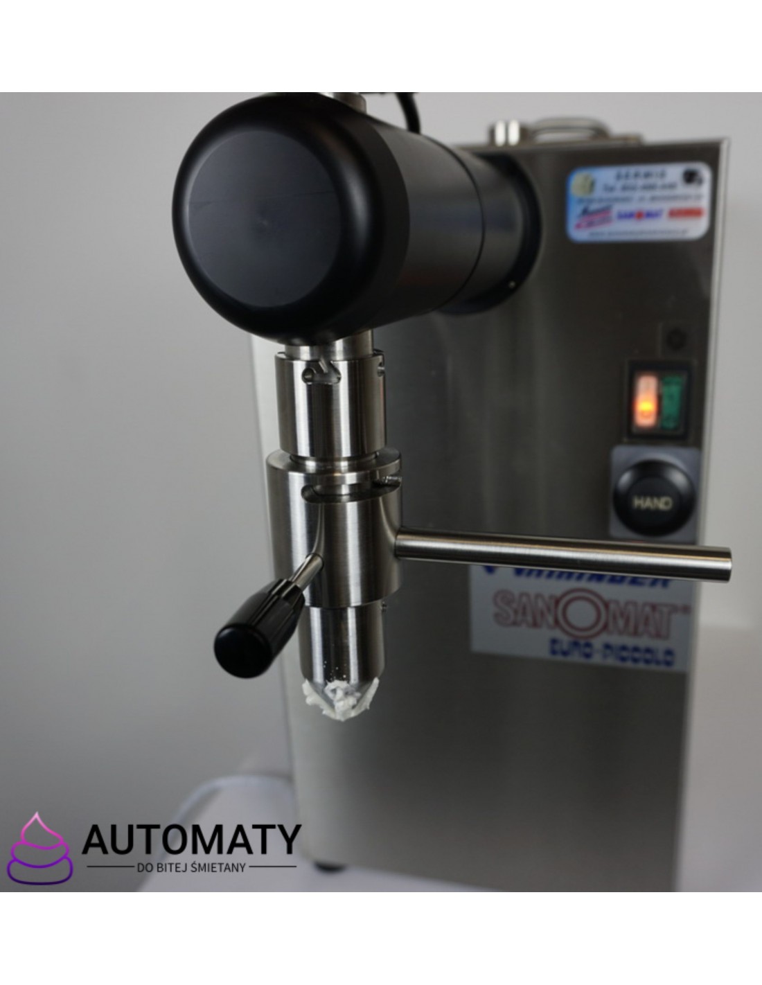 Umożliwia nakładanie bitej śmietany na gofra czy deser lodowy, a po przekręceniu za pomocą rączki