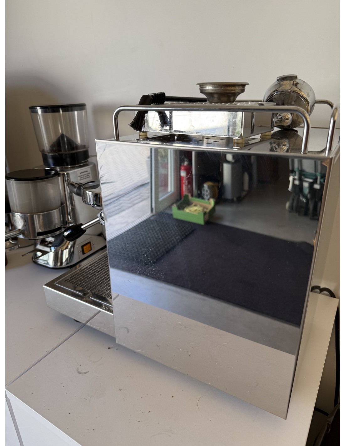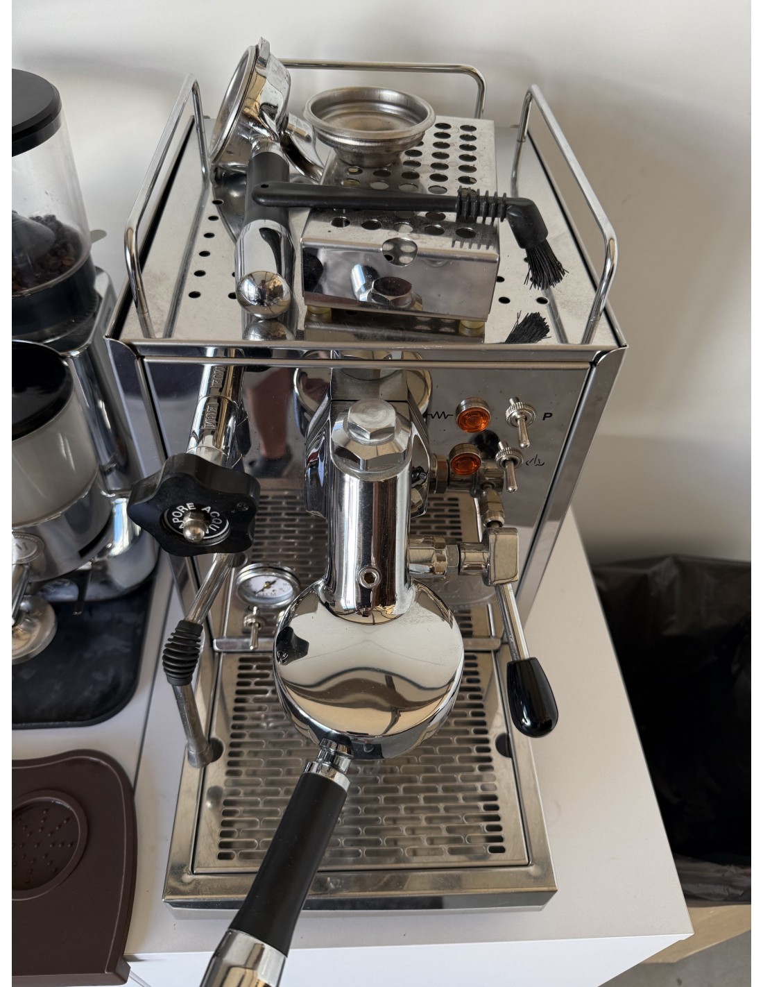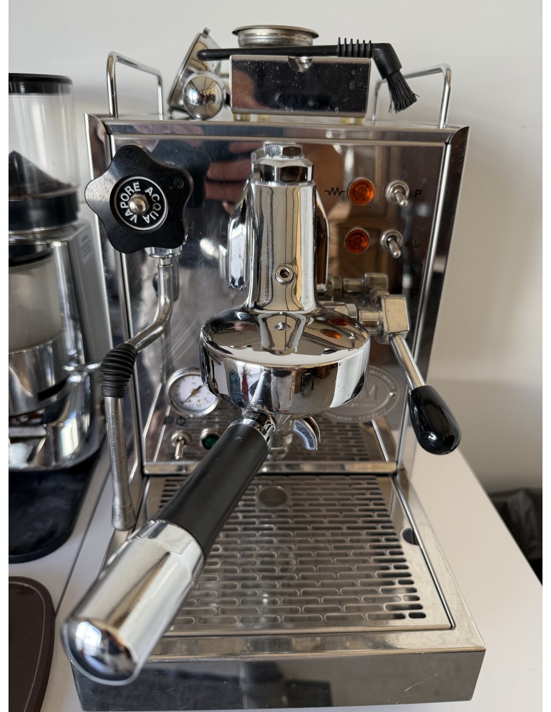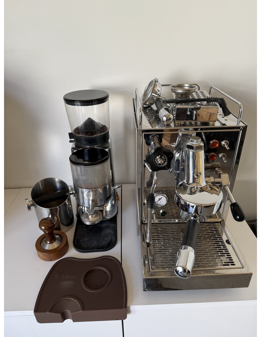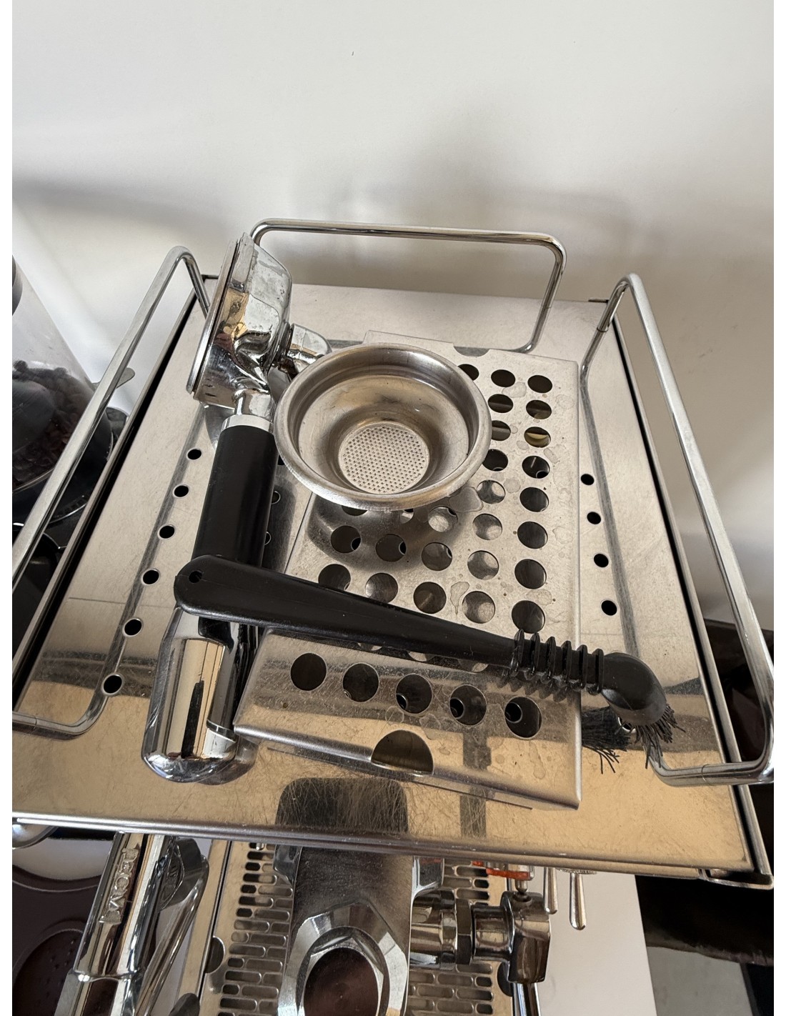 Ekspres , młynek , tamper , 3 kolby , szczotka , podstawka do ubijania , zbiornik na fusy , podstawka do espresso
